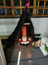 Outside on the balcony they set up a little canopy with black cloth and put mums altar inside, and put incense outside the front door like we do when we do the rituals every 7th day. We then had to burn joss paper to call mum back. The canopy acted like a changing room, for when mum returned, we burn a paper outfit for mum to change into.